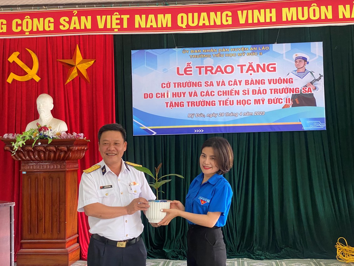 Trường Sa có đảo san hô. Khí trời nghiệt ngã sóng xô đêm ngày. Bàng quả vuông bão tố lay. Giữa phong ba trụ vài cây cùng người. Anh chiến sĩ súng không rời. Đứng canh giữ trọn biển trời quê hương. Các em ạ, từ nay, trường ta đã có cây bàng quả vuông. Các em là những học sinh may mắn được ngắm cây bàng quả vuông ngay tại trường thân yêu của chúng ta. Các em hãy cùng nhau chăm sóc cây thật tốt nhé. Chúng mình cùng gieo niềm tin và chiến thắng vào cây bàng quả vuông nào.