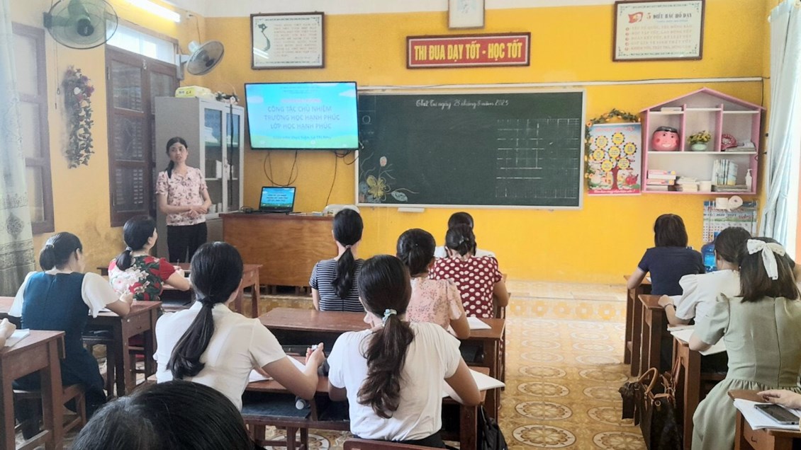 Vì vậy, việc xây dựng trường học hạnh phúc là việc làm rất cần thiết của các nhà trường. Xuất phát từ thực tiễn của nền giáo dục và định hướng phát triển lâu dài của nhà trường, bên cạnh việc nâng cao chất lượng chuyên môn thì việc tạo ra môi trường học tập tích cực, thân thiện tiến đến mục tiêu “Trường học hạnh phúc- Thầy cô hạnh phúc- Học sinh hạnh phúc” là điều mà trường Tiểu học Mỹ Đức II đã và đang hướng tới. Thấu hiểu những giá trị to lớn mà trường học hạnh phúc đem lại và mong muốn nâng cao năng lực ứng xử sư phạm, kiến tạo cảm xúc tích cực trong môi trường giáo dục, sáng ngày 23 tháng 8 năm 2023, trường Tiểu học Mỹ Đức II đã tổ chức chuyên đề cấp Trường: Công tác chủ nhiệm lớp- Trường học hạnh phúc - Lớp học hạnh phúc. Chuyên đề do cô giáo Lê Thị Nhụ thực hiện. Chuyên đề đã diễn ra sôi nổi, hấp dẫn và được các đồng chí cán bộ, giáo viên toàn trường nhiệt tình thảo luận và hưởng ứng.