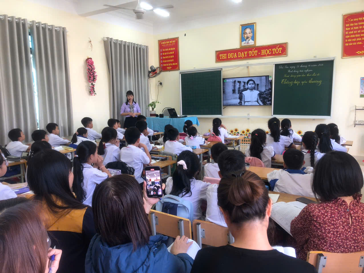 Trong tiết chuyên đề Cụm chiều 29/11 tại trường ( Tiết Hoạt động giáo dục theo chủ đề: Thông điệp yêu thương -Tiết 2 - tuần 12), để phát huy tính tích cực, chủ động tham gia các hoạt động trong của HS giáo viên đã vận dụng linh hoạt các phương pháp như phương pháp Dự án ( giao video gấp hạc giấy về nhà để học sinh học cách gấp và chuẩn bị được trước hạc giấy từ ở nhà), phương pháp thảo luận nhóm, phương pháp đàm thoại, phỏng vấn,... và các kĩ thuật như kĩ thuật Phân tích video, kĩ thuật Lẩu băng chuyền, kĩ thuật chia sẻ nhóm 2, nhóm 4,... Các hoạt động của tiết học đã thu hút học sinh tích cực tham gia.