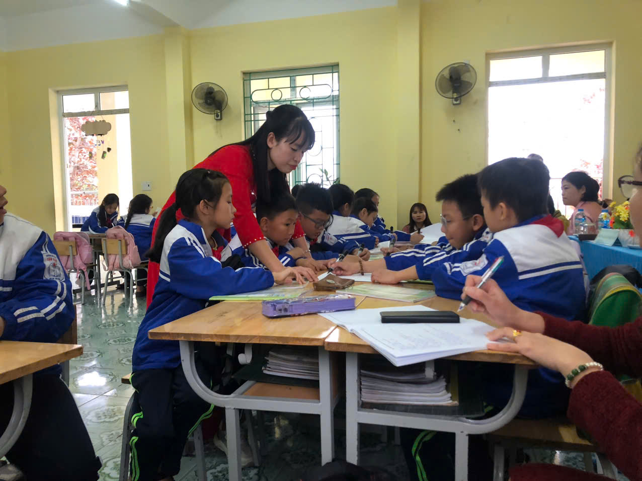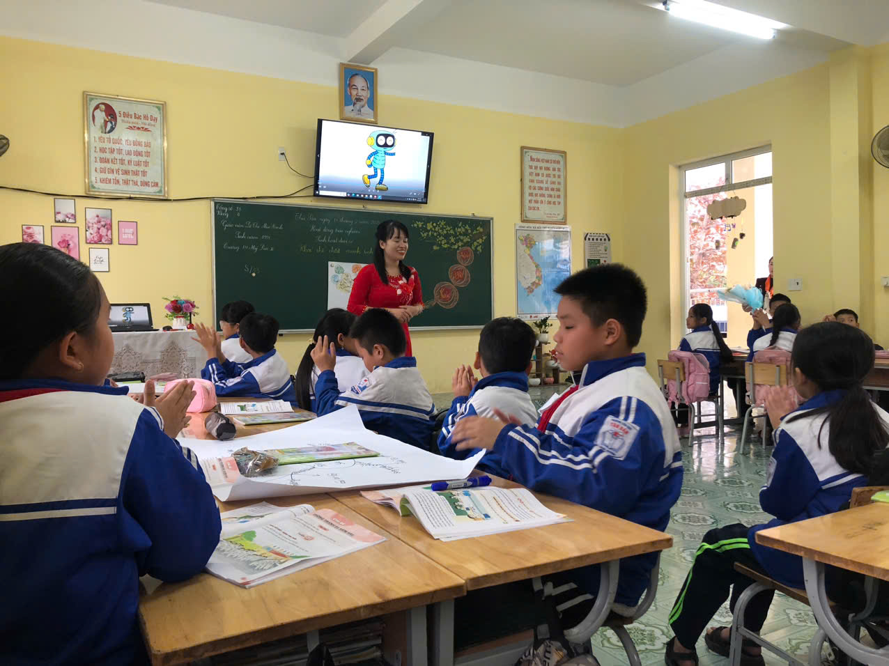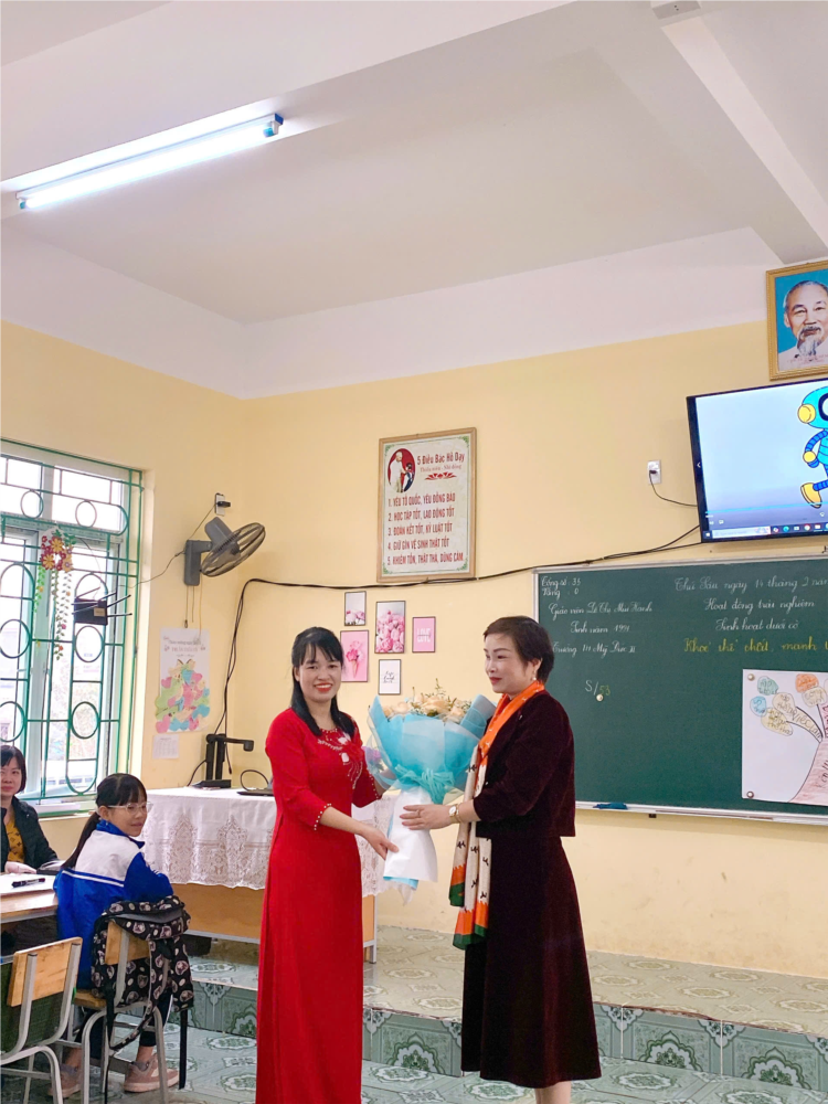 Trong phần thi tiết dạy, cô giáo đã rất chững chạc, tự tin, thể hiện thành công mục tiêu của tiết dạy, được Ban Giám khảo và bạn bè đồng nghiệp đánh giá cao.
