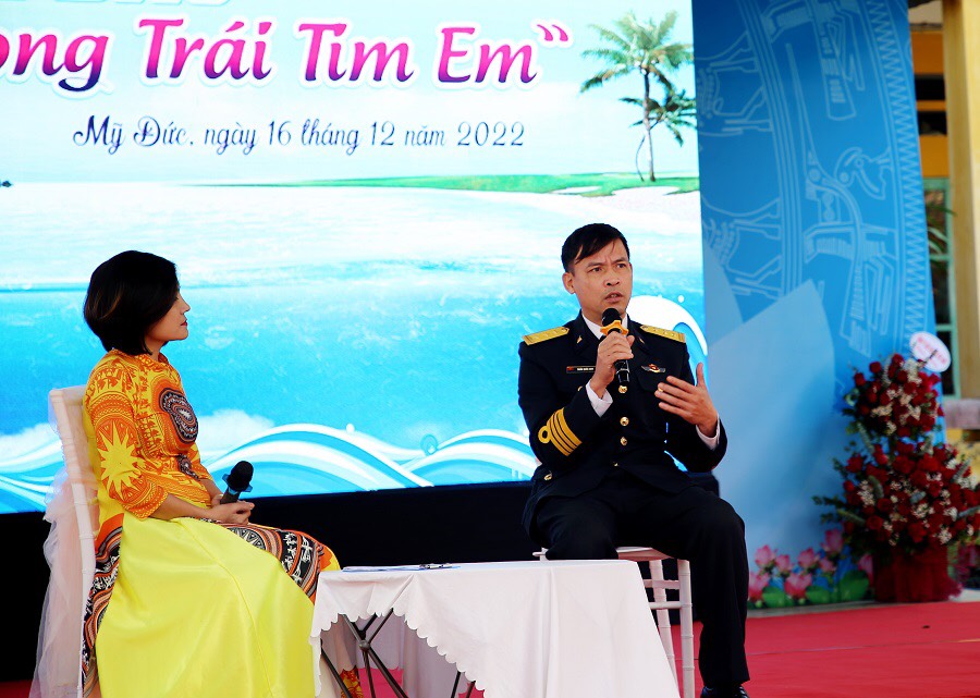Thượng tá Trần Quốc Huy - Phó Chính Uỷ Lữ Đoàn Tên lửa 679 chia sẻ về cuộc sống của những người lính và của bà con nhân dân ở đảo Trường Sa. Thông qua buổi toạ đàm, đồng chí muốn gửi gắm tới mọi người và các em học sinh về lòng biết ơn và sự trân trọng giá trị lịch sử nước nhà nói chung, trong đó có cả sự biết ơn và trân trọng biển đảo thiêng liêng của Tổ quốc.