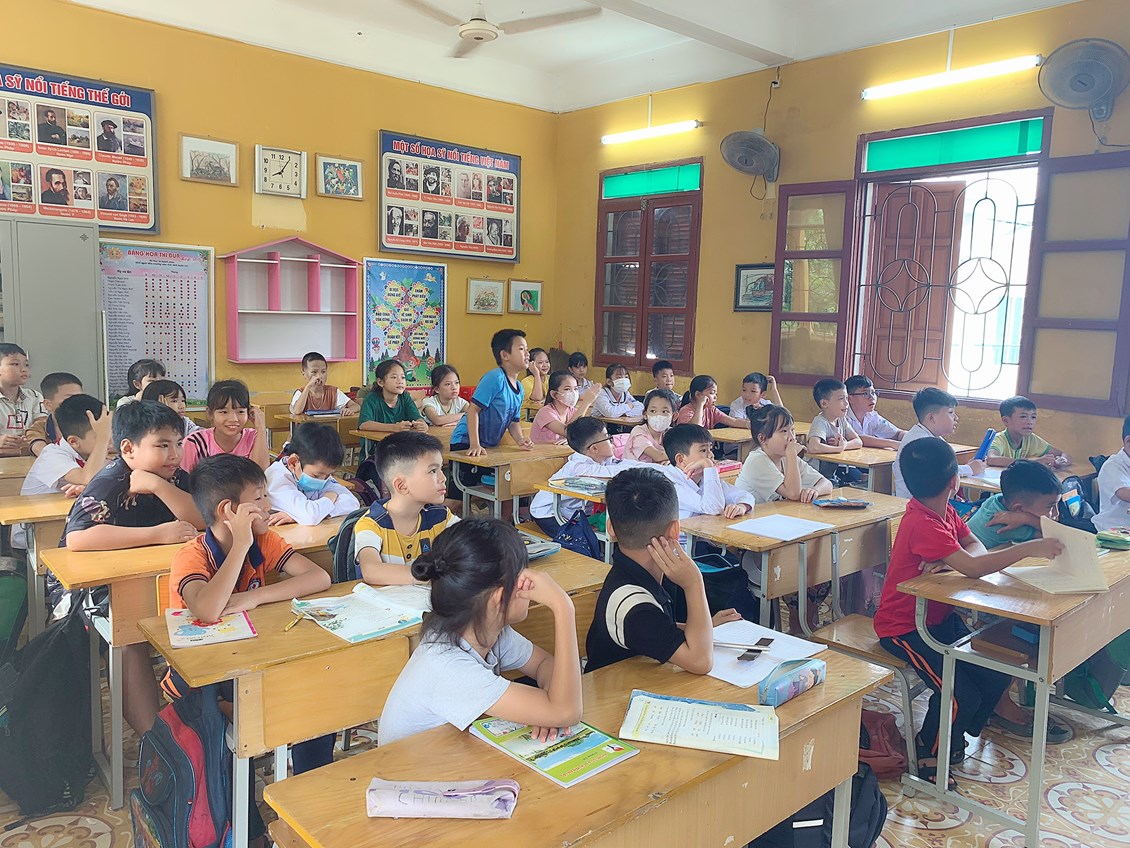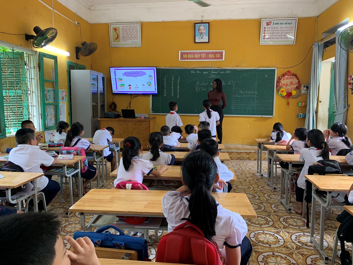 Một tiết sinh hoạt trong câu lạc bộ Tiếng Anh của các em học sinh lớp 4