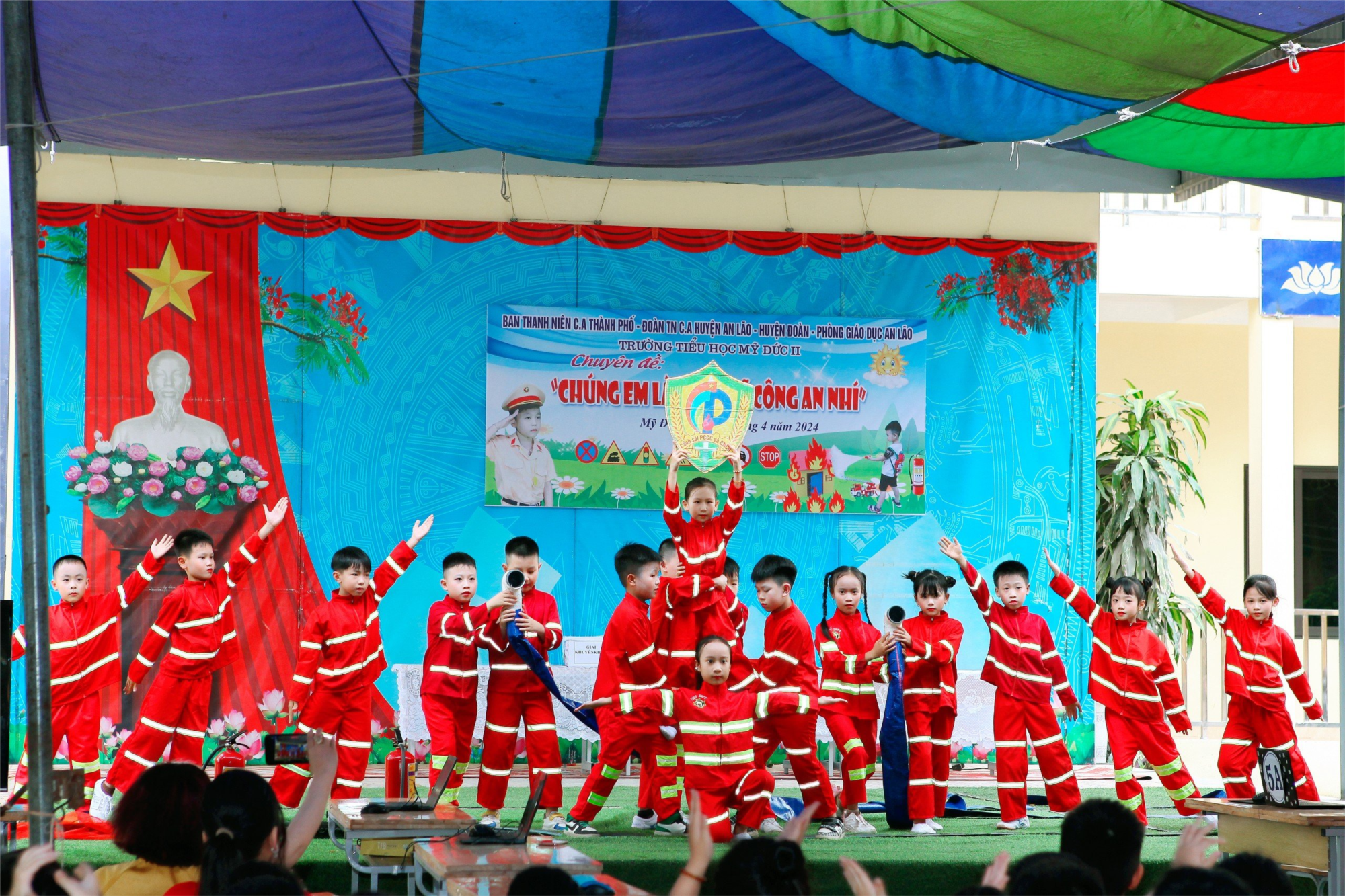 Thực hiện nhiệm vụ kế hoạch năm học và chương trình công tác Đội & Phong trào thiếu nhi năm học 2023-2024 của trường Tiểu học Mỹ Đức II; nhằm tuyên truyền, giáo dục cho các em học sinh ý thức cũng như các kiến thức, kỹ năng khi tham gia giao thông & phòng chống cháy nổ, chiều ngày 12/04/2024 trường Tiểu học Mỹ Đức II phối hợp cùng Ban Thanh niên Công an thành phố, Đoàn Thanh niên Công an huyện An Lão long trọng tổ chức chuyên đề cấp huyện “Chúng em là chiến sĩ công an nhí”. Chuyên đề đã để lại dấu ấn sâu sắc đối với CB - GV - HS nhà trường trong việc đảm bảo an toàn giao thông và phòng chống cháy nổ ở mọi lúc, mọi nơi, mọi thời điểm. Bên cạnh đó là màn biểu diễn tiết mục văn nghệ múa hát “Bài ca chiến sĩ phòng cháy chữa cháy của các em học sinh khối 3 rất ấn tượng và xuất sắc.