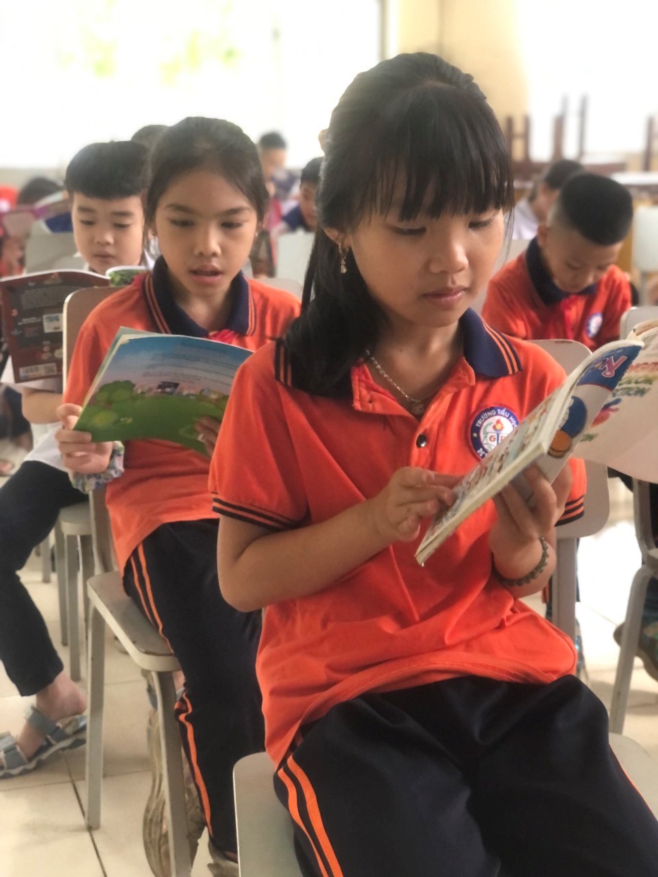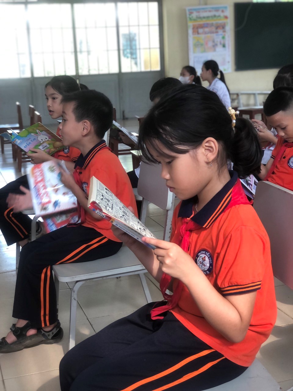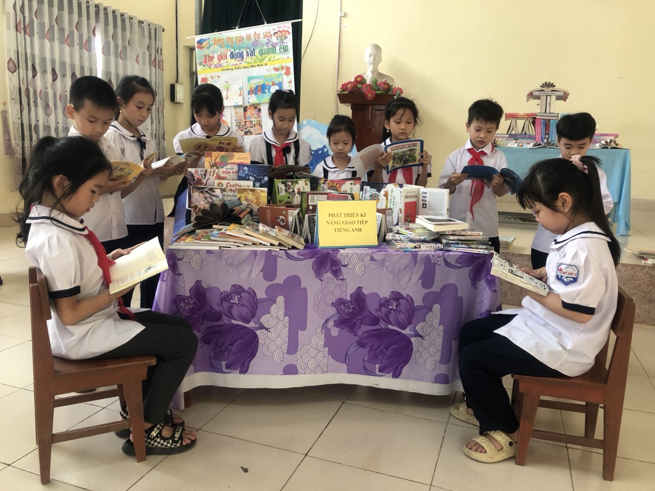 Hiểu được tầm quan trọng của sách học sinh lớp 3A trường Tiểu học Mỹ Đức II đã hăng say tham gia ngày hội đọc sách. Với những tâm hồn ngây thơ, trong sáng của tuổi học trò, sách đã mang đến cho các em kho báu quý giá của loài người đó là tri thức. Sự hăng say, nâng niu những trang đã thể hiện được tình yêu của các em với những cuốn sách thân yêu.