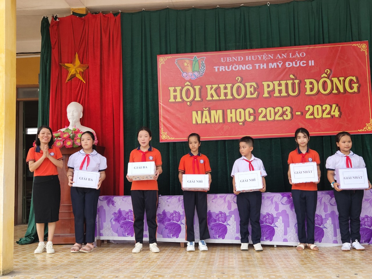 Trong Hội khỏe Phù Đổng năm học 2023 - 2024, toàn thể học sinh 3 lớp 5 tham gia phần thi Nghi thức Đội, đây là một trong những chuyên hiệu rèn luyện Đội viên hằng năm. Các chi đội phải thực hiện các kĩ năng như: tập hợp đội hình hàng dọc, quay trái, quay phải, quay đằng sau, giậm chân tại chỗ. Lần lượt các chi đội thực hiện bài thi của mình theo qui định do em chi đội trưởng chỉ huy. Các đội viên đều nắm được các kĩ năng và thực hiện thành thạo, đúng nhịp hô của chi đội trưởng. Sau phần thi, chi đội 5A đạt giải Nhất, 5C giành giải Nhì và 5B giành giải Ba.