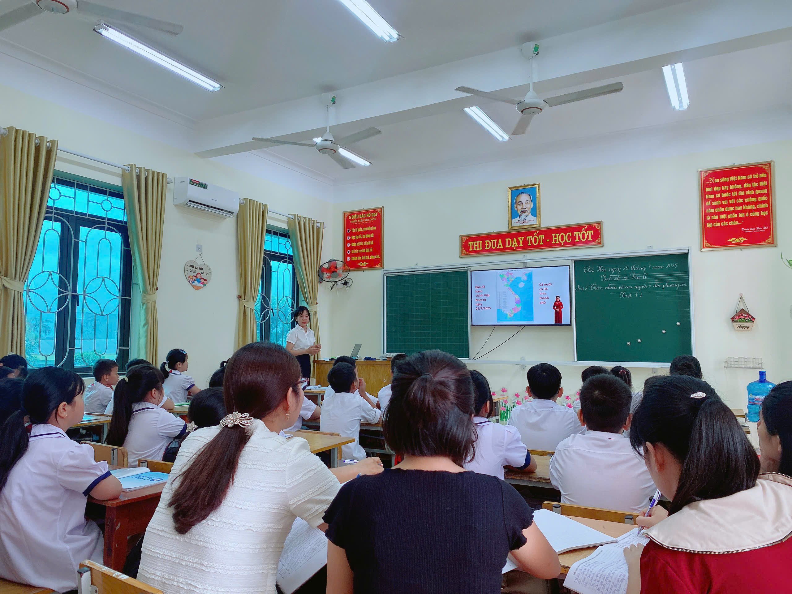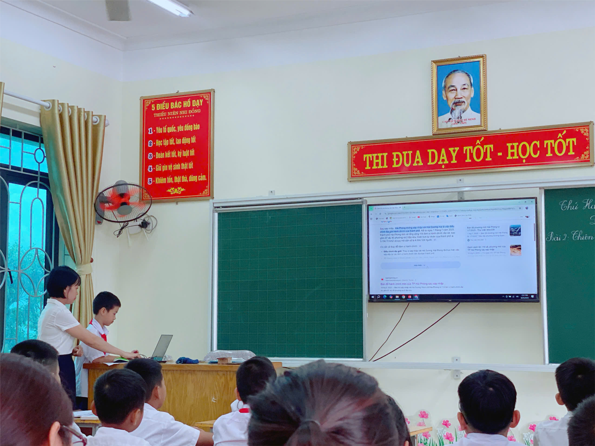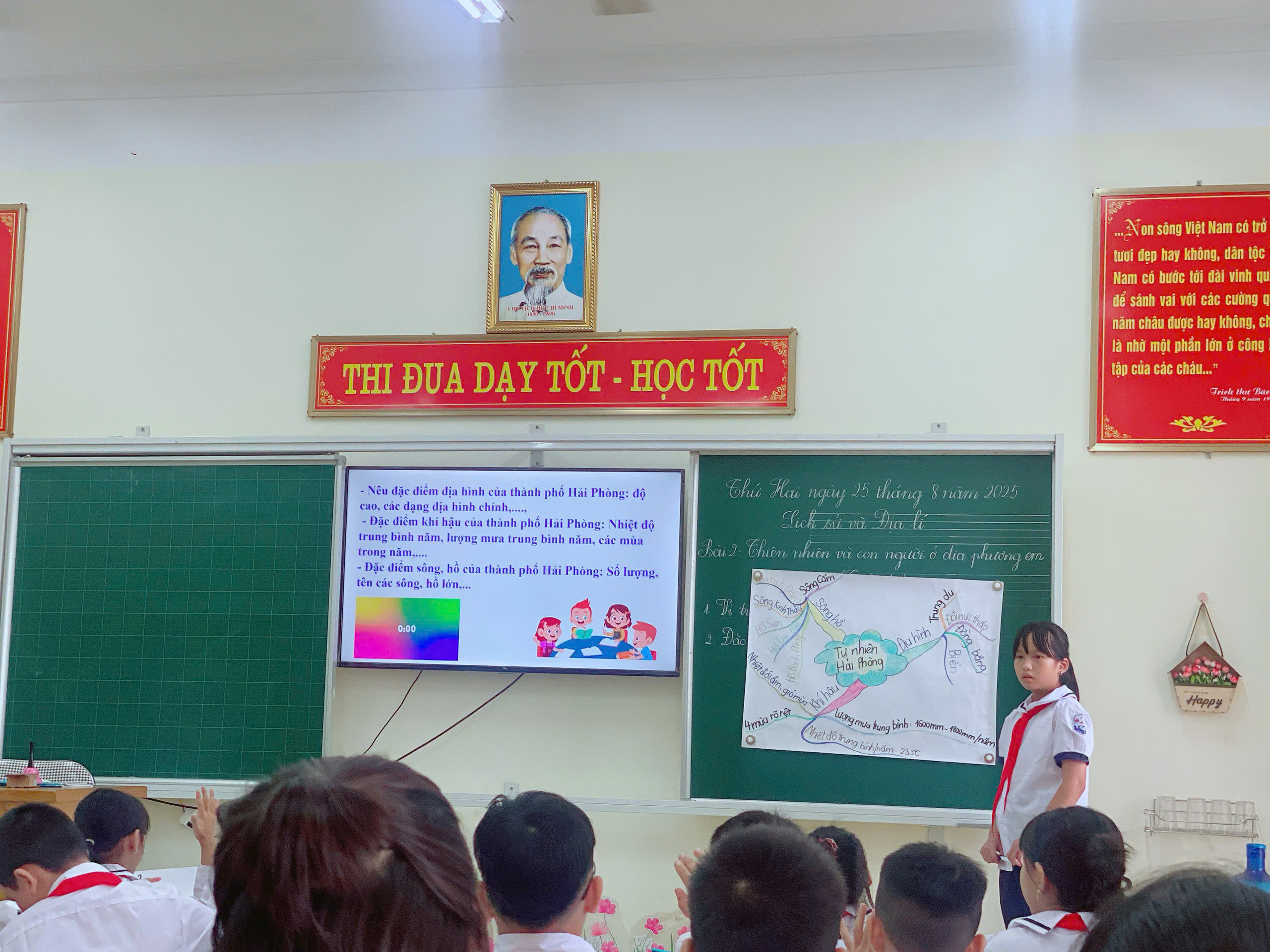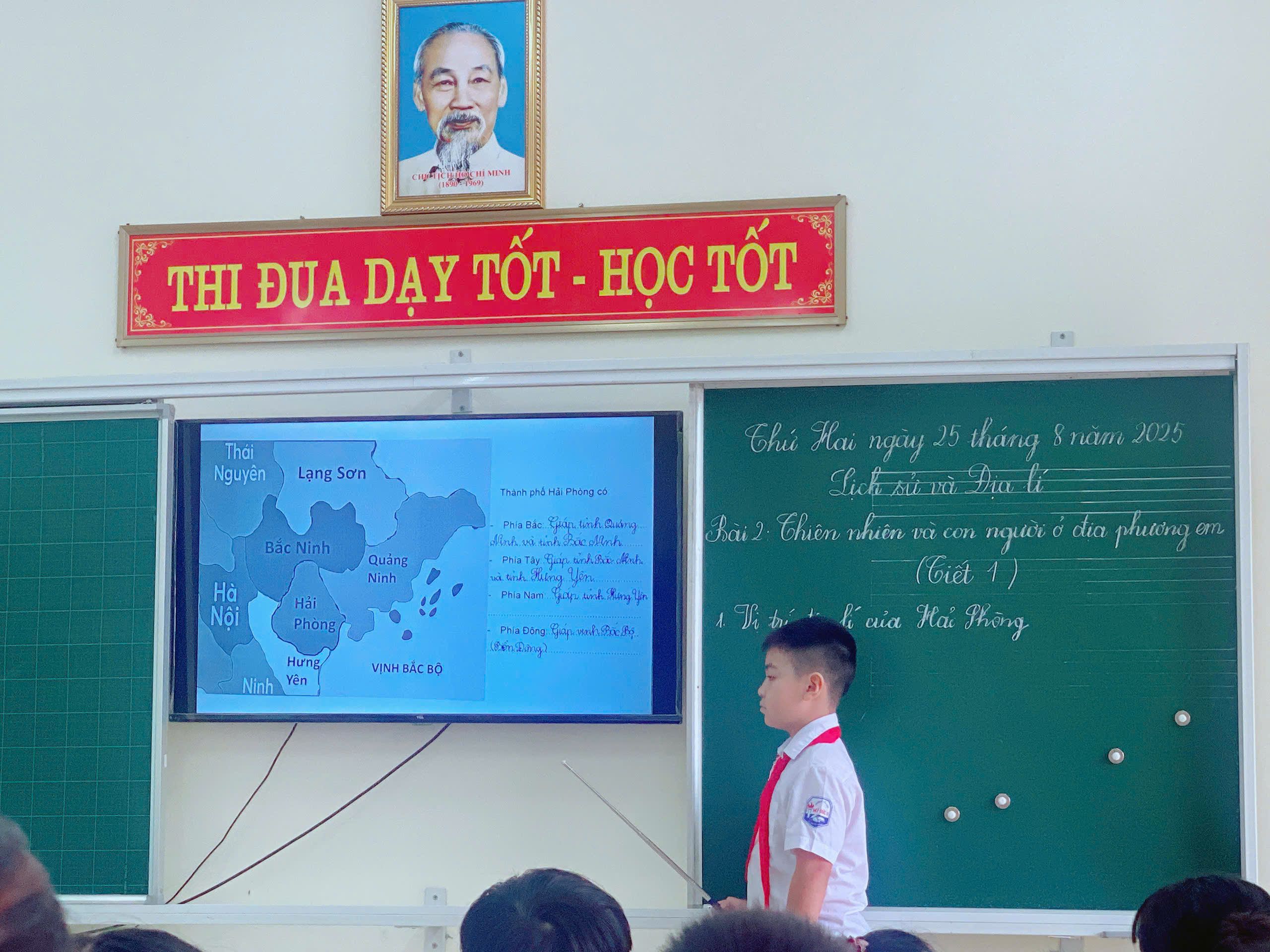 Trong tiết học, học sinh được tìm hiểu về: Vị trí địa lí của thành phố Hải Phòng; Đặc điểm tự nhiên của Hải Phòng: vị trí địa lí, khí hậu, sông ngòi, núi đồi, cảnh quan tự nhiên. Điểm mới của tiết học là giáo viên đã hướng dẫn học sinh tra cứu thông tin trên mạng internet, tìm hình ảnh minh họa, video tư liệu và số liệu liên quan đến địa phương. Qua đó, các em tiếp cận kiến thức nhanh chóng, trực quan và sinh động hơn.