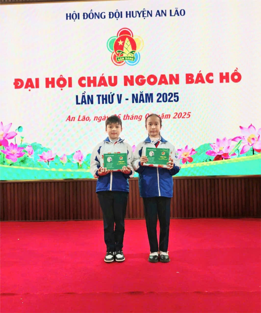 Chiều ngày 26/2/2025, Đại hội Cháu ngoan Bác Hồ huyện An Lão đã được tổ chức tại Trường Tiểu học Quốc Tuấn. Em Bùi Hải Nam - học sinh lớp 5C và em Nguyễn Khánh Huyền - học sinh lớp 4A đã vinh dự được Hội đồng Đội huyện An Lão tặng giấy khen Cháu ngoan Bác Hồ cấp huyện. Đây là buổi lễ vinh danh những em học sinh có thành tích Xuất sắc trong học tập và rèn luyện. Xin chúc mừng hai em.