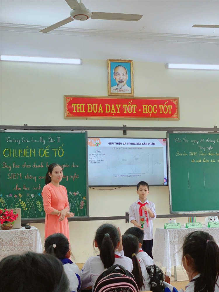 Nhiều sản phẩm độc đáo, sáng tạo đã được hoàn thành và trưng bày trong lớp học. Các em rất hào hứng khi được giới thiệu sản phẩm của nhóm mình, chia sẻ ý tưởng cũng như thông điệp bảo vệ môi trường tới bạn bè.