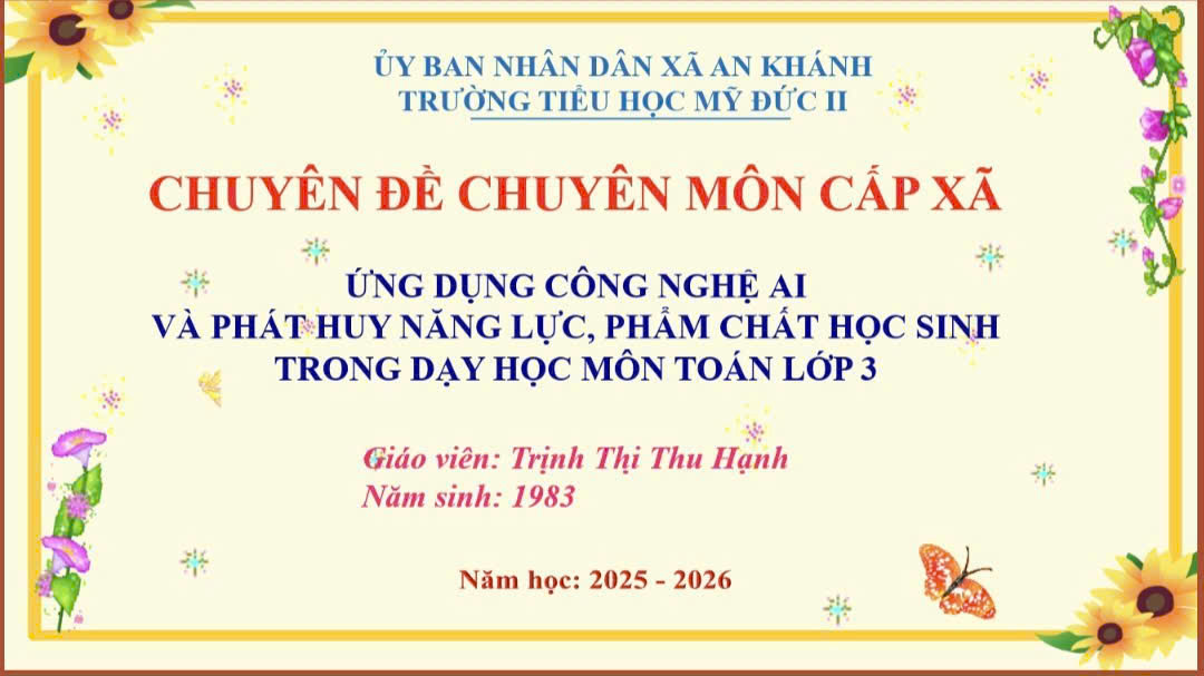 🌟Chiều ngày 11/12, thực hiện kế hoạch chuyên môn năm học 2025 – 2026, Trường Tiểu học Mỹ Đức II đã tổ chức Chuyên đề chuyên môn cấp xã với chủ đề: “Ứng dụng công nghệ AI và phát huy năng lực, phẩm chất học sinh trong dạy học môn Toán lớp 3.”